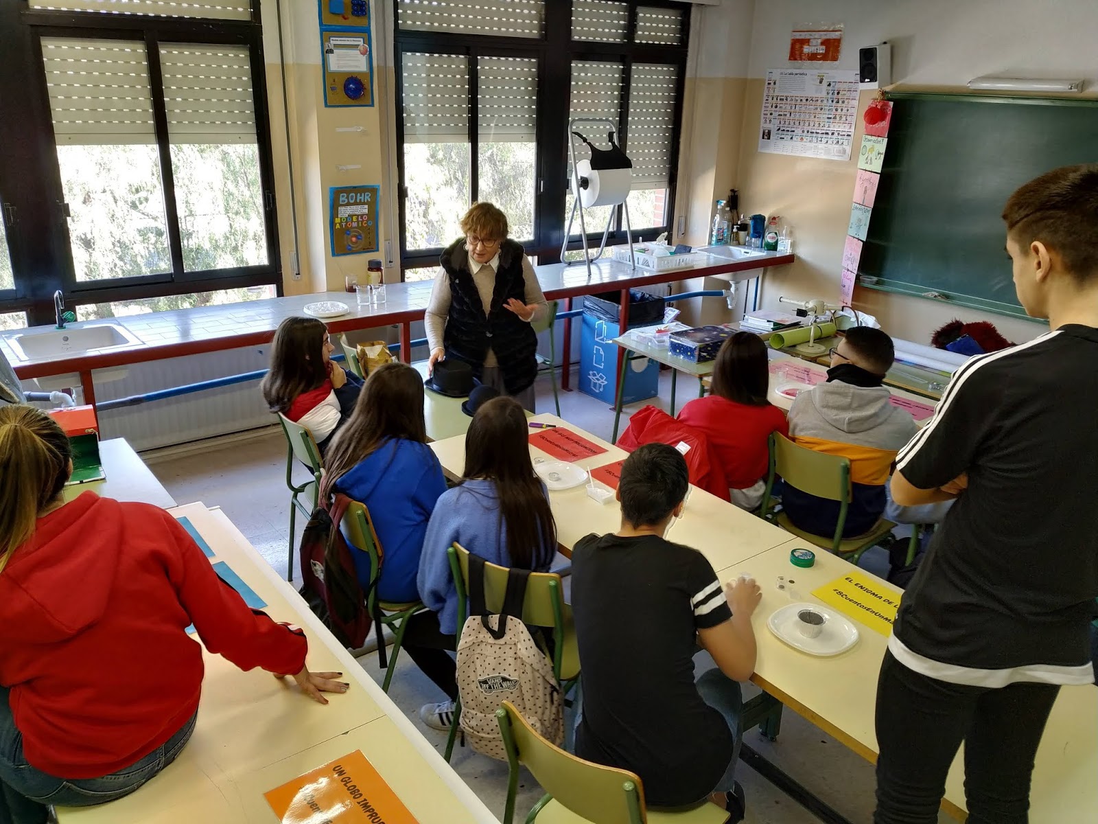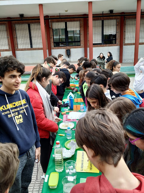 Año tras año invitamos a los alumnos de 6ª Primaria del CEIP Virgen de Guadalupe a visitar nuestro IES durante la #XISemanaCultural, a los alumnos les encanta que sus futuros compañeros atiendan sus explicaciones y exposiciones, tanto alumnos del CEIP Guadalupe como sus profesores disfrutaron de «una jornada divulgativa festiva» donde aprender divirtiéndose es posible. Melli Toral, profesora de Física y Química del colegio Salzillo (Molina de Segura), tras 40 años de experiencia docente, en su etapa de jubilación, ha recopilado en un magnífico libro titulado #8CuentosEnUnMatraz (también en inglés), sus cuentos de CIENCIA para mayores, ¡qué maravilla! Es una persona especial, es sensible, solidaria y vocacional, tanto que lo recaudado por la venta de este libro, se donará íntegramente a las distintas asociaciones que se dedican a hacer que el día a día de los niños hospitalizados esté lo más normalizado posible. Aulas hospitalarias a las que acude habitualmente a dar clase de Física, Química y Matemáticas. Su labor divulgadora y altruista la manifiesta con hechos, por lo que no dudó en explicar a los alumnos de 4ºA sus experimentos para divulgarlos a los alumnos del CEIP Virgen de Guadalupe, una mañana de divulgación en nuestra #VIFeriaDeLaCienciaYlaTecnología, donde LEER & EXPERIMENTAR es una mezcla muy EDUCATIVA. En esta edición ha publicado un nuevo cuento científico>> #UnPueblecicoMuyPeriódico lo recaudado por la venta de este libro de nuevo se donará íntegramente a las Aulas Hospitalarias para incrementar la dotación de material experimental. Si os apetece LEER CIENCIA PARA MAYORES & COLABORAR, podéis adquirir este fantástico libro reservando en esta dirección de mail: remediostoral@gmail.com