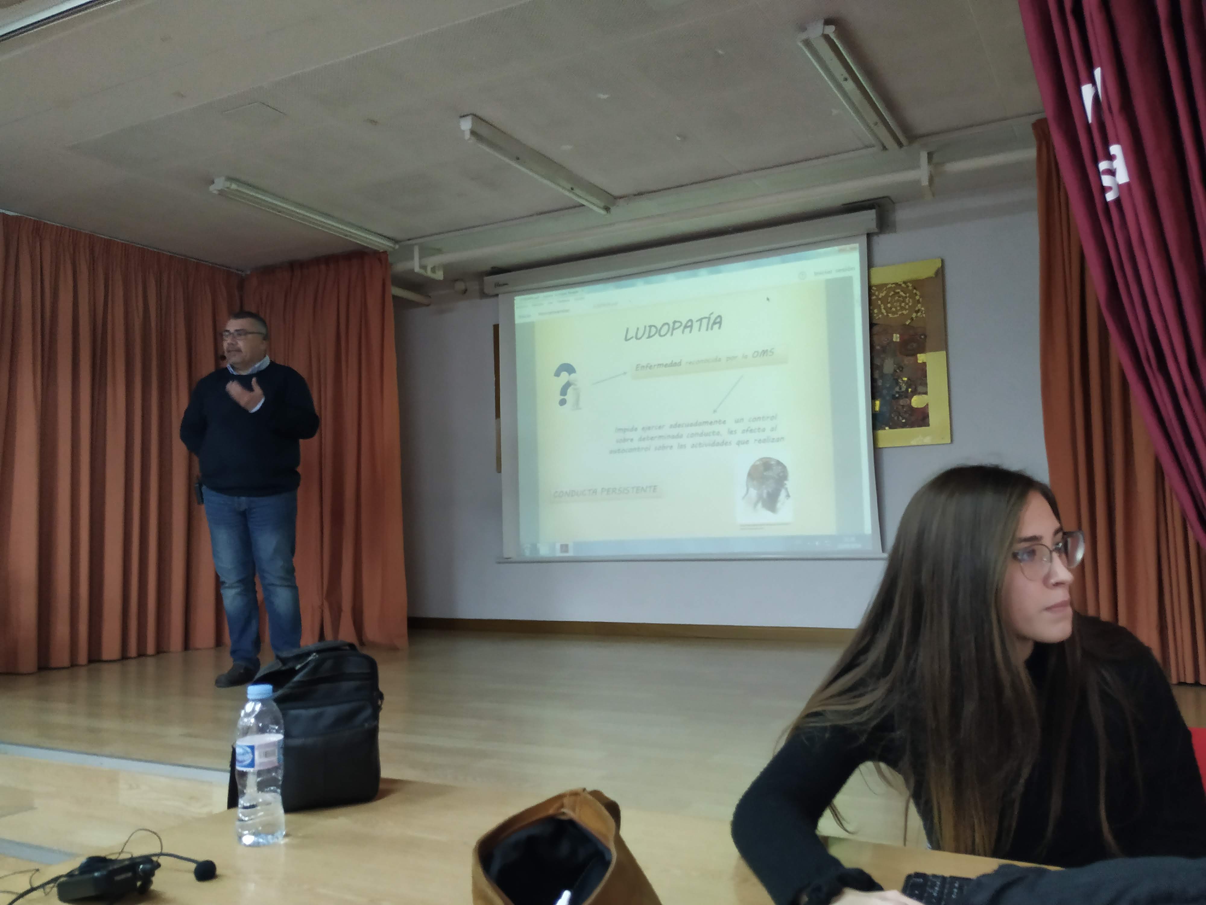 Manuel Hernández Marhuenda ha intervenido en nuestra Semana Cultural de una manera altruista para ayudar a prevenir la ludopatía exponiendo todo aquéllo que actualmente sucede en nuestra región. Las irregularidades de las que se alimenta el negocio de los juegos de azar, los peligros que conlleva esta enfermedad. Desde su asociación, Nueva Esperanza llevan más de 15 años luchando para la prevención y la cura de la ludopatía, habiendo asistido un número cercano a los 800 pacientes. Nos parece muy interesante cómo la edad media del ludópata ha bajado considerablemente en los últimos tres años ,de una medio entre 35 a 40 a una horquilla que va de los 18 a los 25 años. Ha sido una intervención magnífica que agradecemos enormemente. Gracias a personas como él, se consiguen cambios tan necesarios en esta sociedad actual.