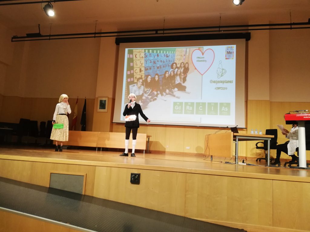 El día 13 de febrero participamos en la Jornada de divulgación«Entre ElementOs QuímicOs» organizada por la Facultad de Química de la Universidad de Murcia y el Colegio de Químicos de Murcia para conmemorar 2019 año internacional de la Tabla Periódica.