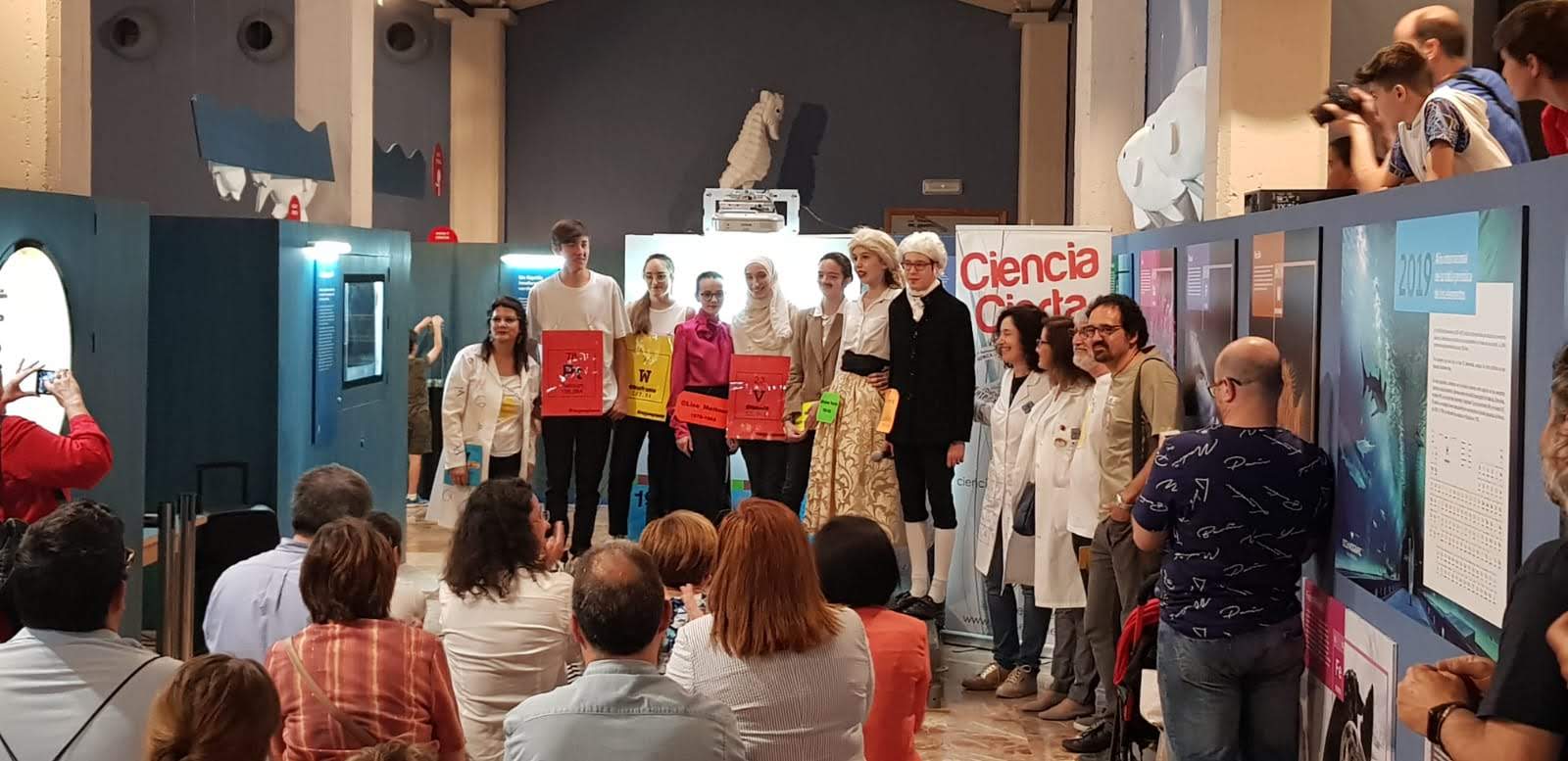 20 alumnos de nuestro IES )1ºESO, 2ºESO, 3ºESO, 4ºESO y 1ºBachillerato) participaron…como divulgadores de la Historia de la Ciencia, representando la obra de teatro científico, Entre ElementOs QuímicOs, ELEMENTAL! , asaltos de mujeres científicas y 4 alumnos defendieron temas de actualidad científica como ponentes.