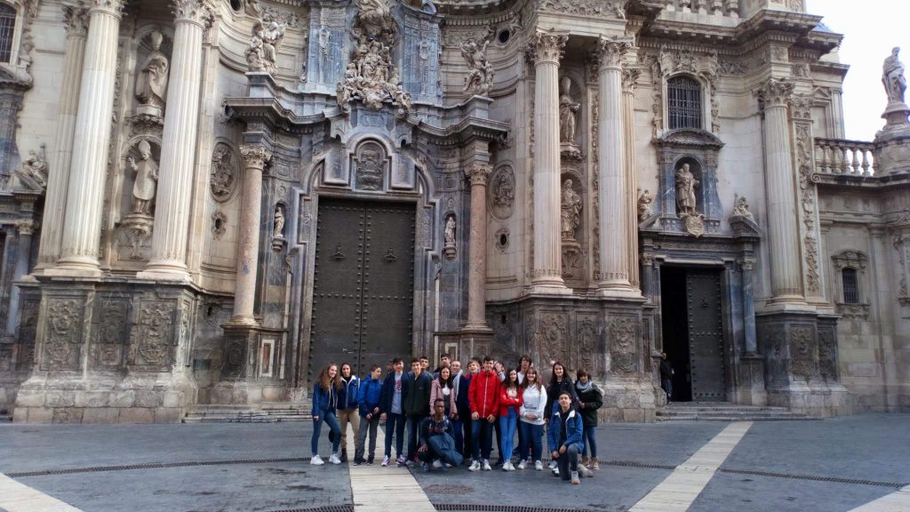 4º A y C ESO hemos realizado un interesante recorrido histórico comenzando en el Museo de ellas Artes de la Región de Murcia, siguiendo por la muralla de Sta Eulalia y centrando nuestra atención en el exterior e interior de la joya arquitectónica que es la Catedral de Murcia. Hemos continuado por las calles de Traperias, Plaza de Sto. Domingo y Campus Universitario de la Merced, admirando el claustro de la facultad de Derecho.
