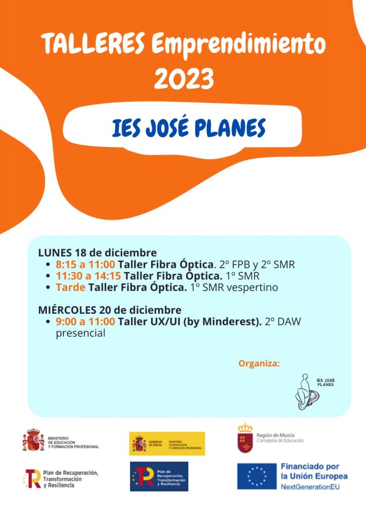 Dentro del Aula de Emprendimiento del IES José Planes, se van a realizar la próxima semana una serie de talleres de fibra óptica, en los cuales nuestros alumnos aprenderán sobre esta importante tecnología en el ámbito de las redes de ordenadores.