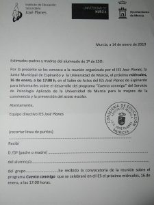 Programa «Cuenta conmigo» del Servicio de Psicología Aplicada de la Universidad de Murcia para la mejora de la CONVIVENCIA y la PREVENCIÓN del ACOSO ESCOLAR.
