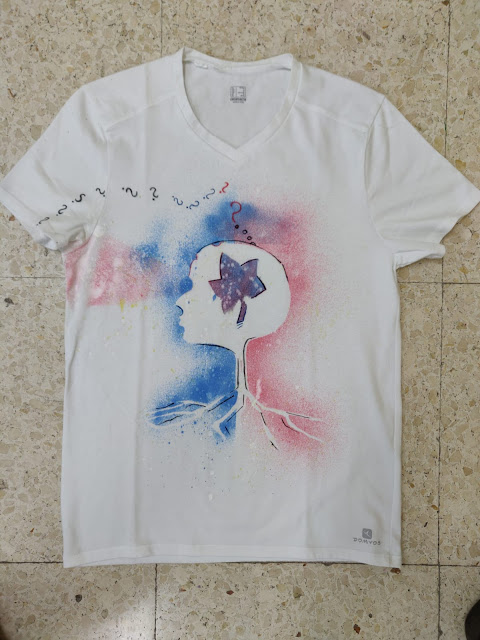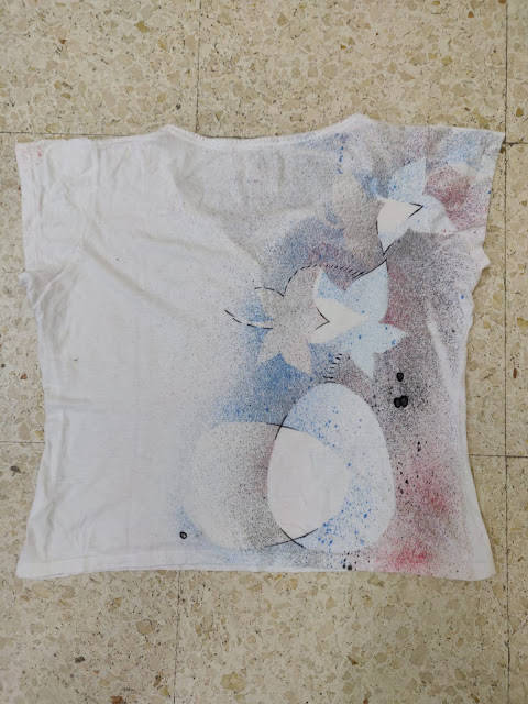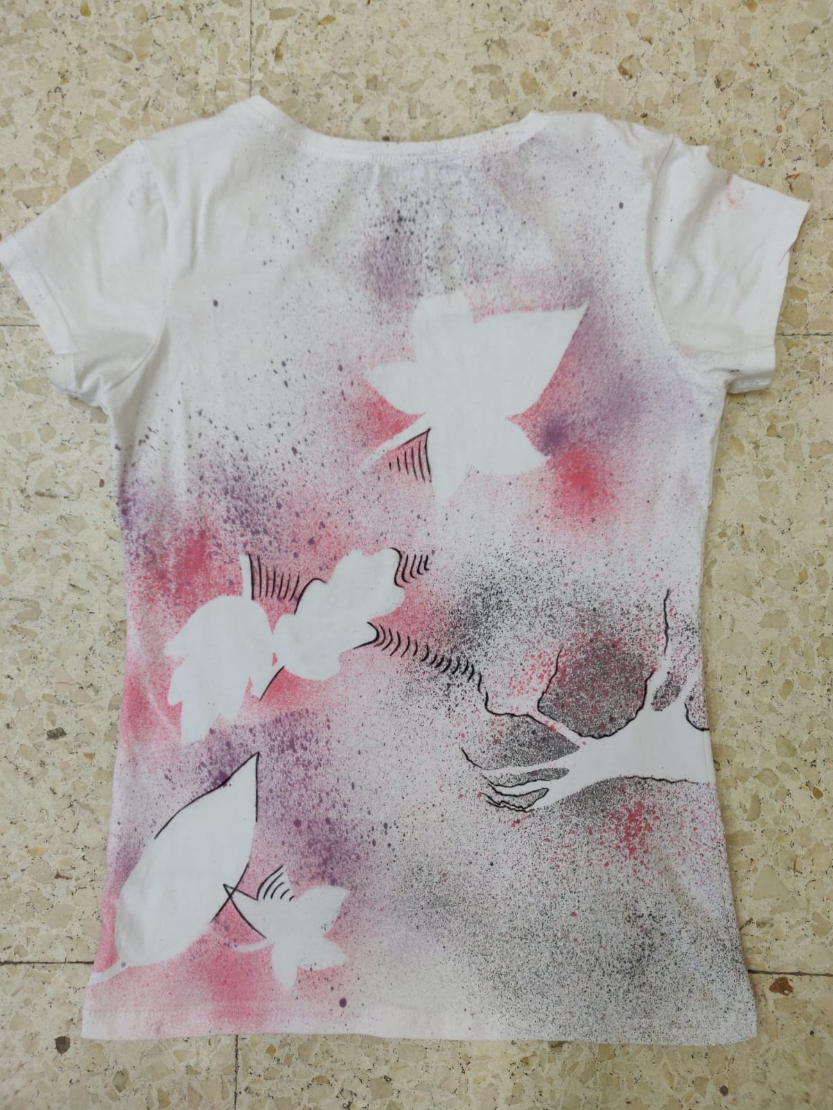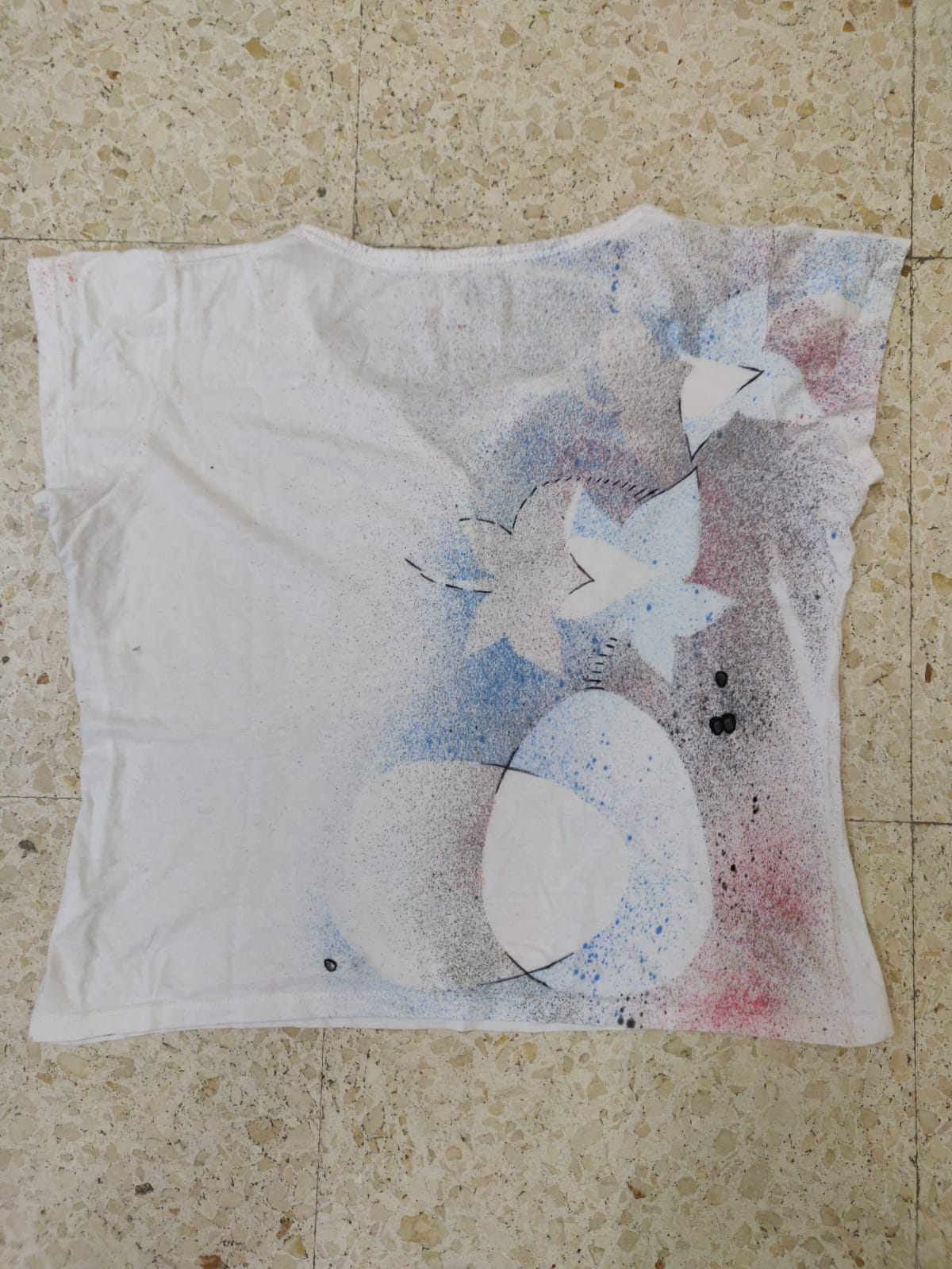 Se han utilizado sprays de pintura de tela y plantillas con formas y motivos relacionadas con el Medio Ambiente, tema en que se ha centrado este año nuestra #XIISemanaCultural.