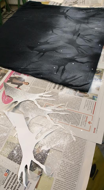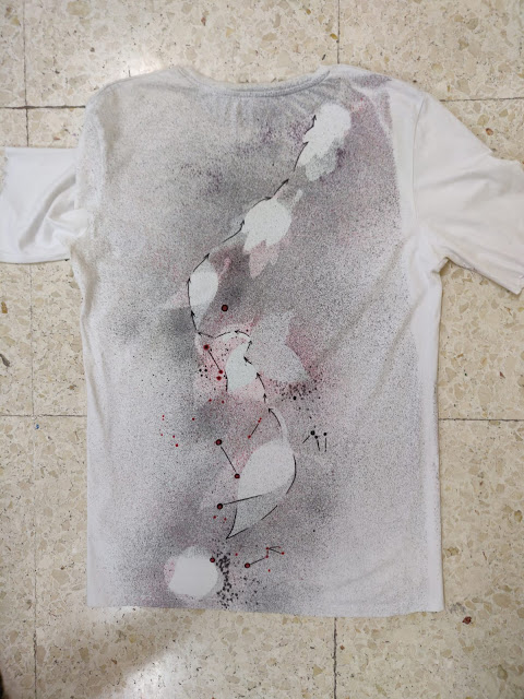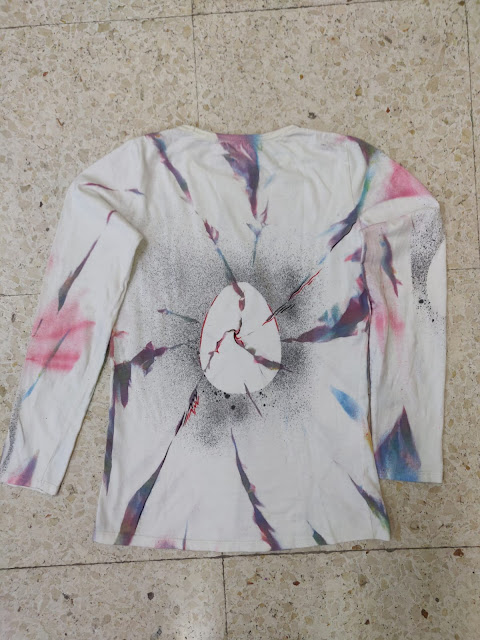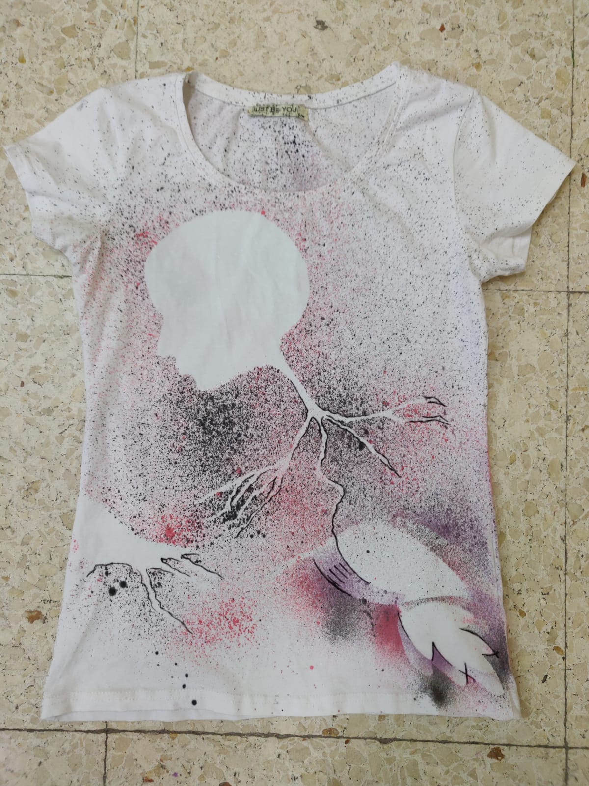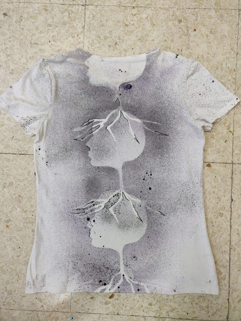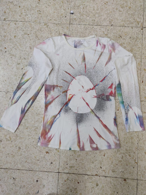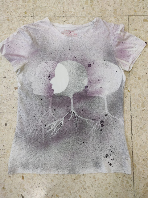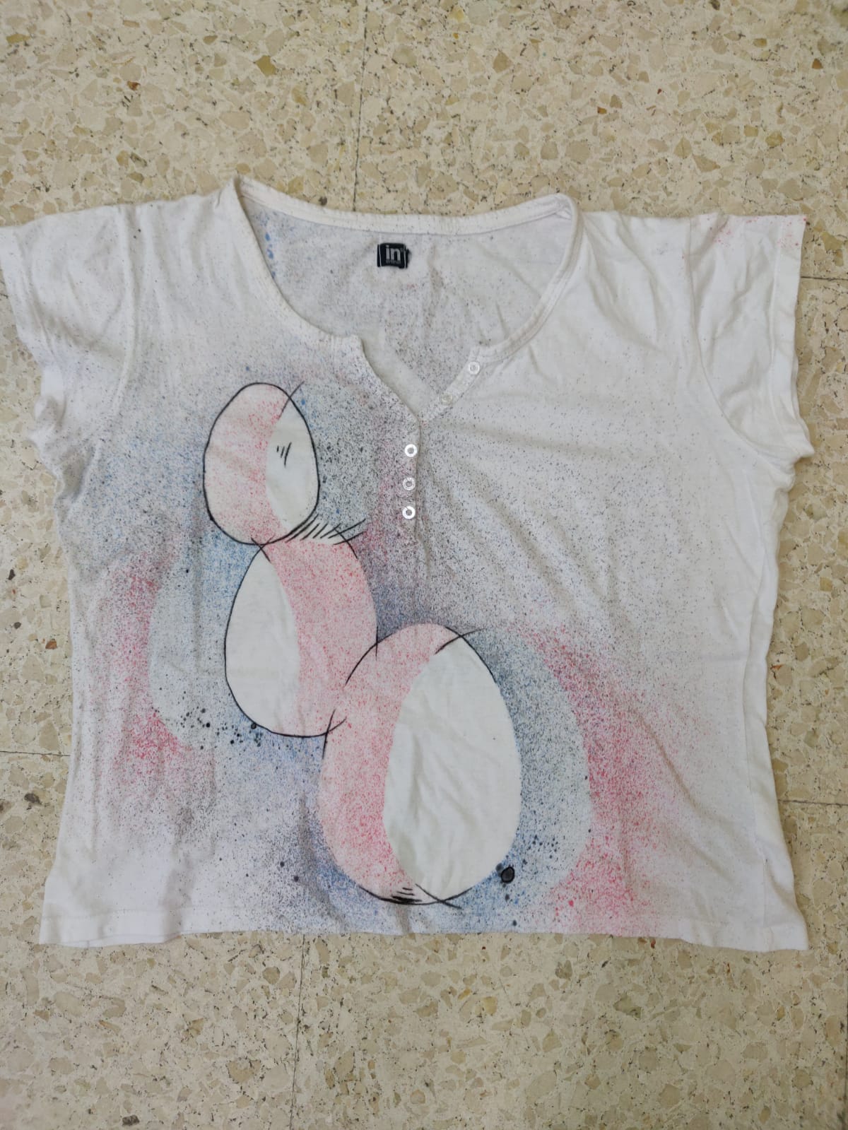 Se han utilizado sprays de pintura de tela y plantillas con formas y motivos relacionadas con el Medio Ambiente, tema en que se ha centrado este año nuestra #XIISemanaCultural.