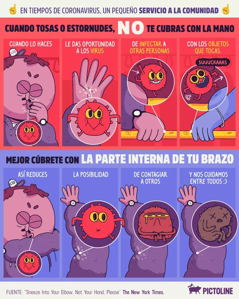 ?Al toser o estornudar cúbrete la boca con y la nariz con el codo flexionado o con un pañuelo desechable