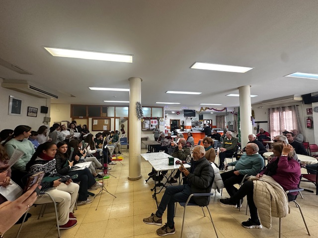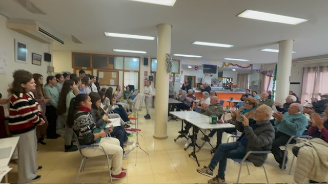 El coro del IES José Planes, dirigido por doña Isabel Carboneras,  ha visitado el Centro de Mayores de Guadalupe para dar un recital de villancicos. Después han compartido un almuerzo navideño organizado por los mayores.