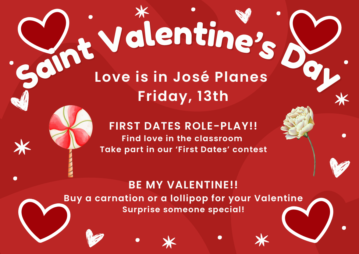 Este viernes 13 de febrero celebraremos San Valentín en nuestro centro, aquí os dejamos una tarjeta para la ocasión…